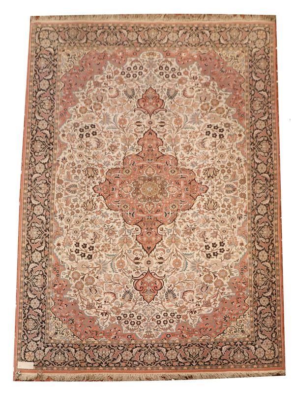 Tappeto persiano Islamabad a disegno floreale su fondo avana e bordo blu, M 3,31 x 2,21