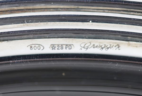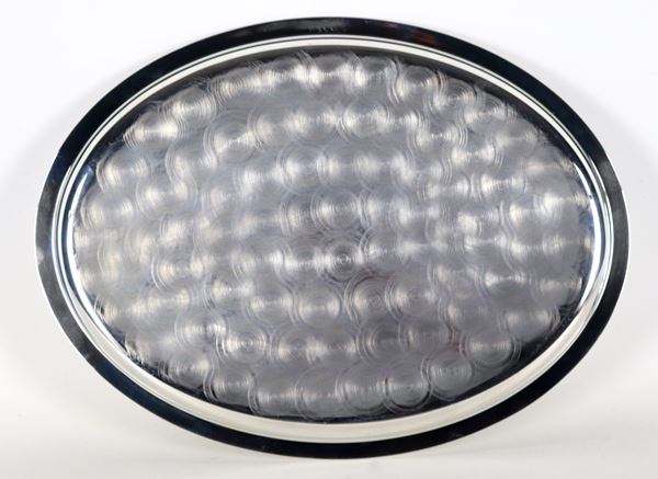 Vassoio ovale in argento liscio con bordo cesellato, gr. 670