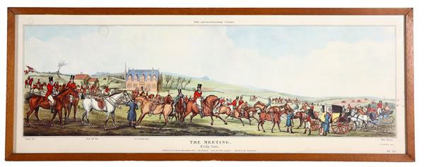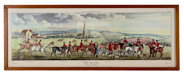 Coppia di piccole stampe inglesi a colori raff.nti "Caccia alla volpe"