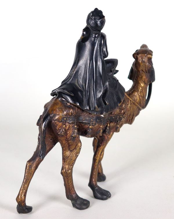 "Re Magio con cammello", piccola scultura in bronzo patinato