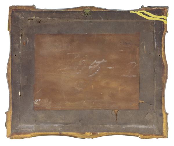 cornice in legno dorato e intagliato e passepartout, cm 12,5 x 18,5.