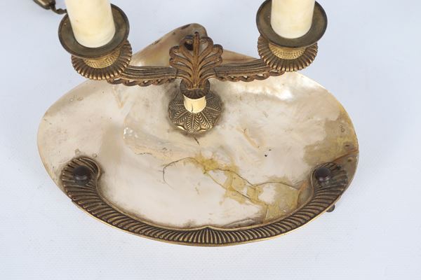 Antico originale candelabro in bronzo dorato e guscio di conchiglia, cesellato e sbalzato a motivi Luigi XVI, 2 luci. La conchiglia presenta [..]
