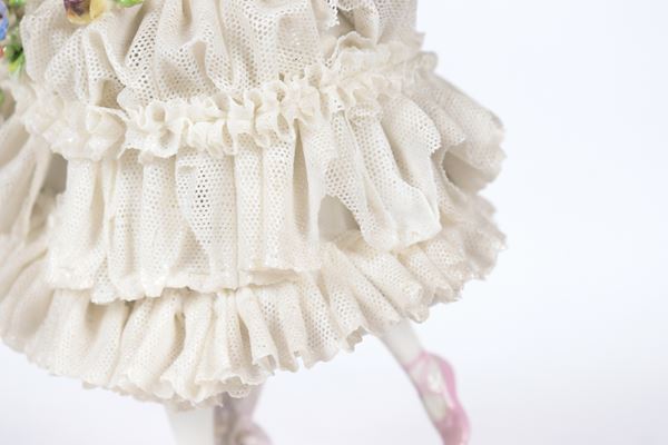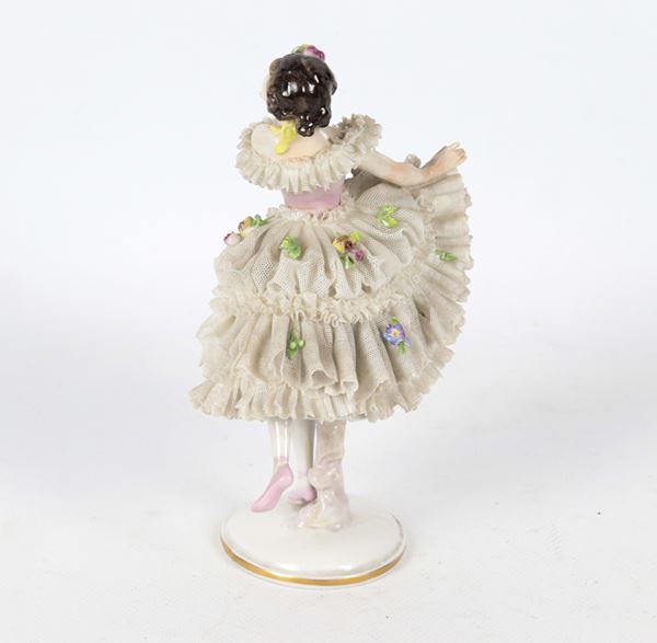"Ballerina", statuina in porcellana policroma di Capodimonte, la merlettatura del vestito presenta qualche mancanza