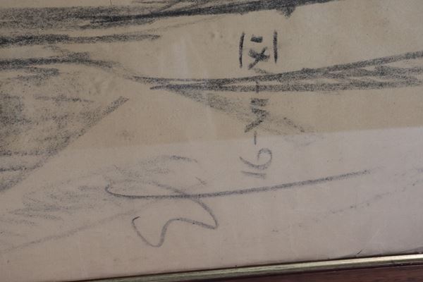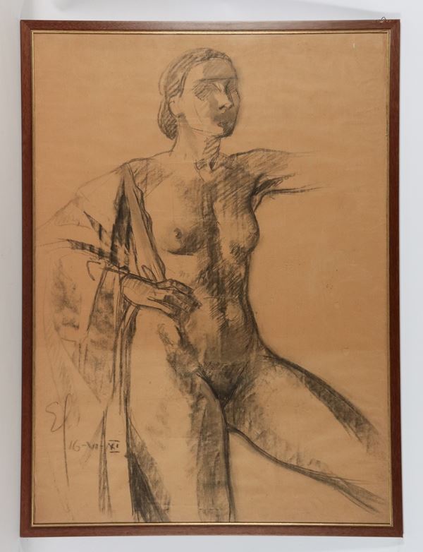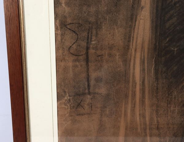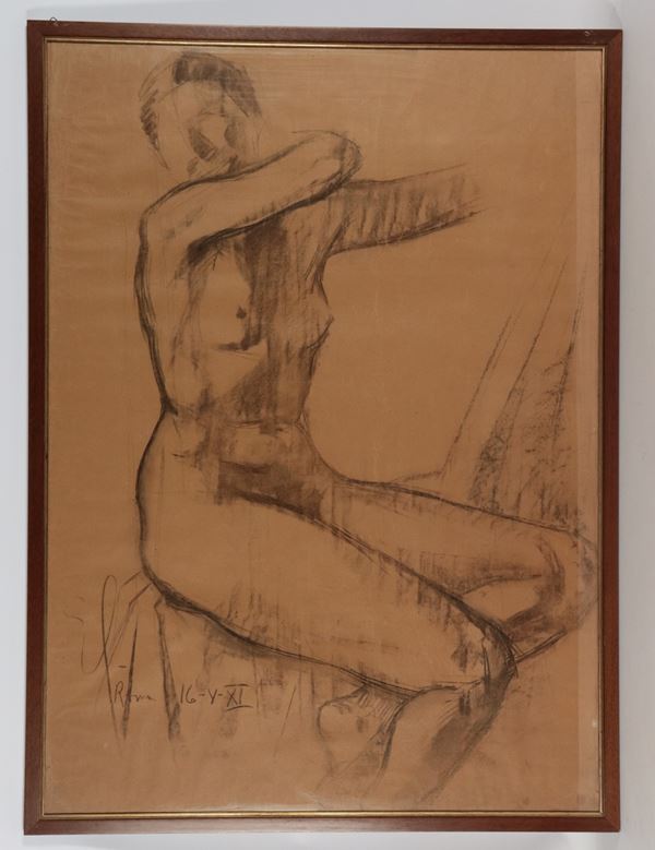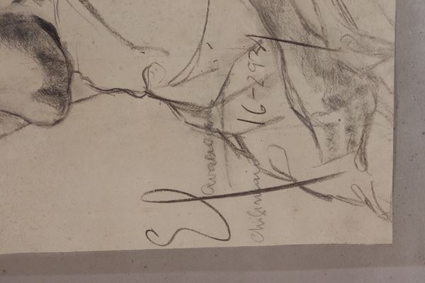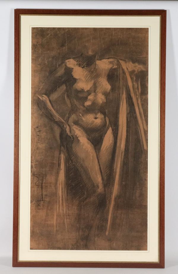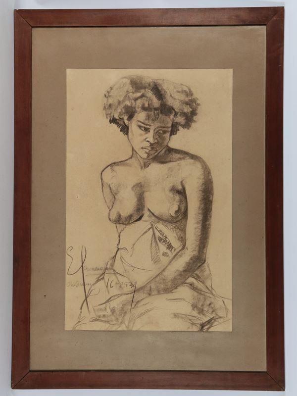Firmati. "Nudi di donne africane", lotto di quattro grandi disegni a carboncino e matita su carta, cornicette in noce
