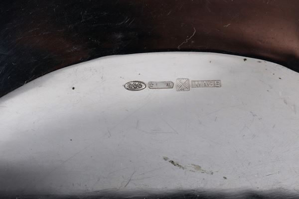Ciotola ovale in argento con bordo cesellato, gr. 350