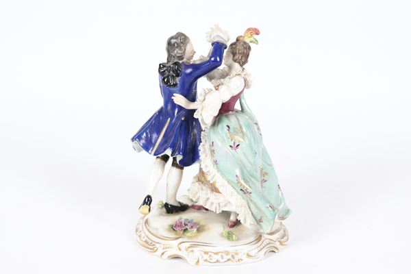 "Il ballo dei nobili", piccolo gruppo in porcellana policroma di Capodimonte, lievi mancanze