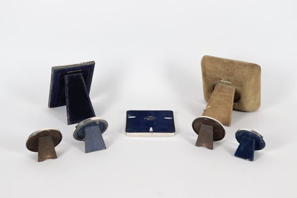 Lotto di sette piccole cornici portaritratti in argento, varie forme e misure. Lievi difetti