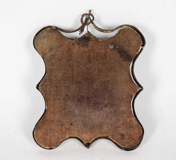 "Madonna con Santi", antica placchetta in smalto dipinto in cornicetta di rame