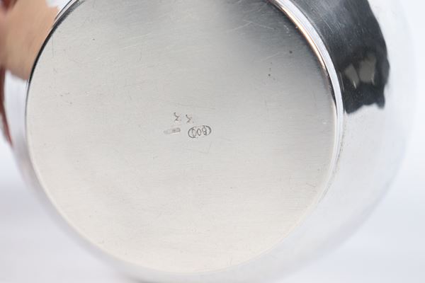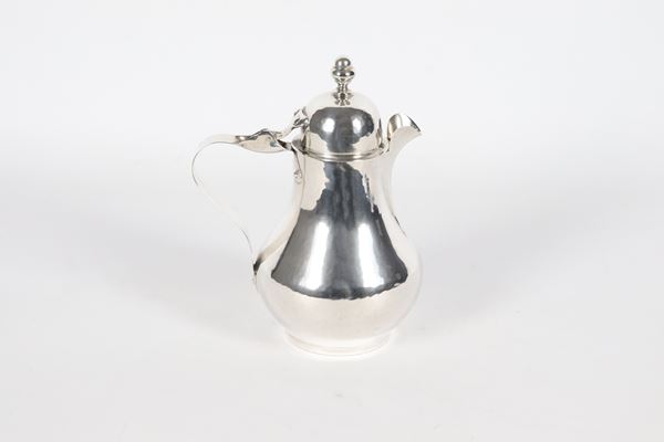 Piccola caffettiera in argento liscio con manico ricurvo, gr. 270
