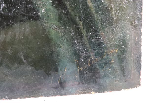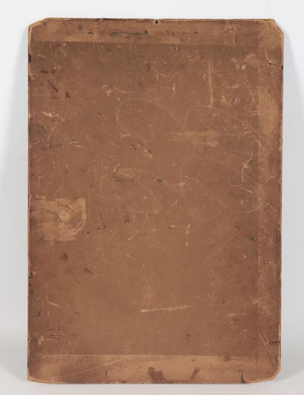 Firmato. "Ritratto di zingaro", piccolo dipinto su faesite