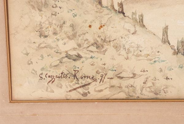 Firmato e datato 1897. "Veduta del Tevere con Castel Sant'Angelo e San Pietro", dipinto all'acquarello