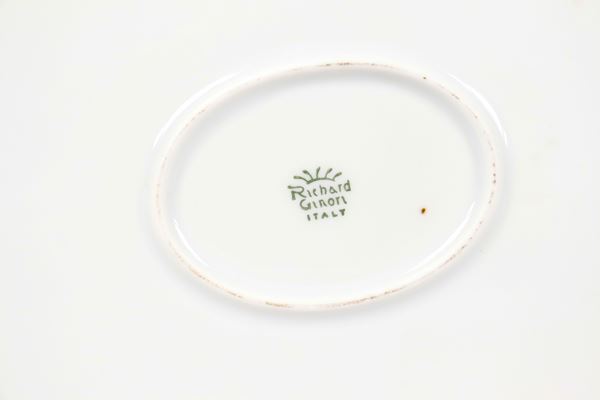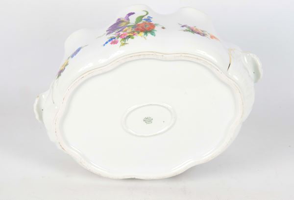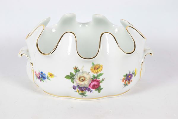 Rinfrescatoio in porcellana bianca Richard Ginori, con decorazioni variopinte a motivi di mazzetti di fiori e lumeggiature in oro zecchino
