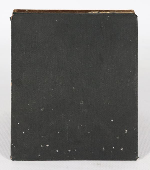 "Ritratto di nobildonna", antica miniatura dipinta in cornicetta di velluto marrone. Difetto alla miniatura