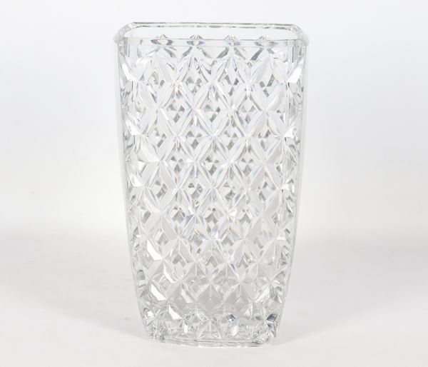 Vaso in cristallo lavorato a punta di diamante a motivi di rombi a rilievo