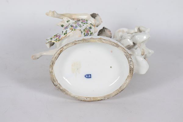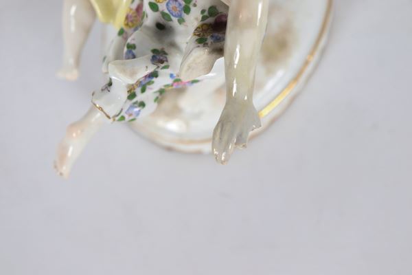 "Allegoria con Vestali e Cupidi", antico gruppo in porcellana Vienna variopinta, mancanze. XIX Secolo