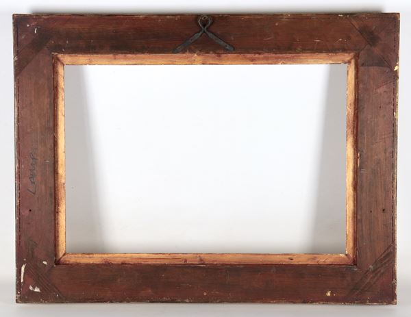 Antica cornice francese in legno dorato e intagliato a motivi di volute e intrecci floreali