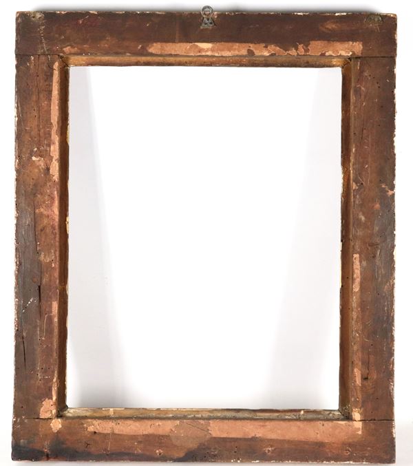 Antica cornice Impero in legno dorato e intagliato a motivi di palmette