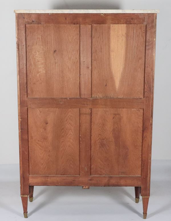 Antica libreria francese Napoleone III, in bois de rose e radica di tuia con intarsi a motivi geometrici e riquadri a filettature, due sportelli [..]