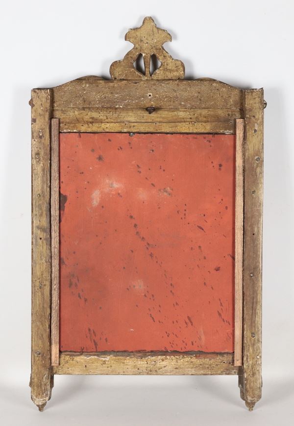 Antica piccola specchiera Impero in legno dorato e intagliato, specchio a mercurio