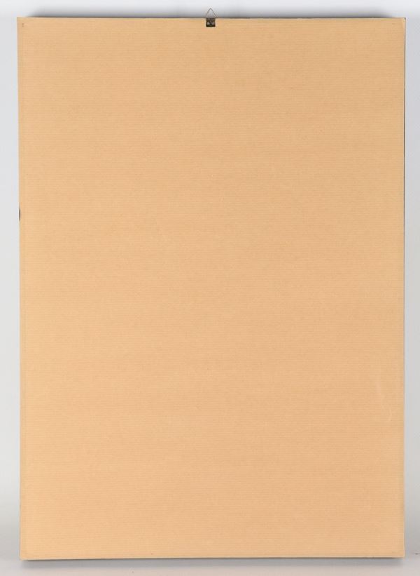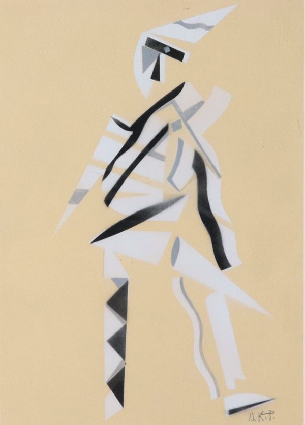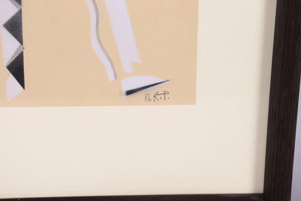 Siglato. "Figura maschile astratta", dipinto a tecnica mista su carta in cornice ebanizzata e passepartout