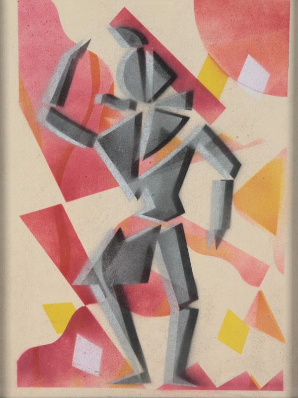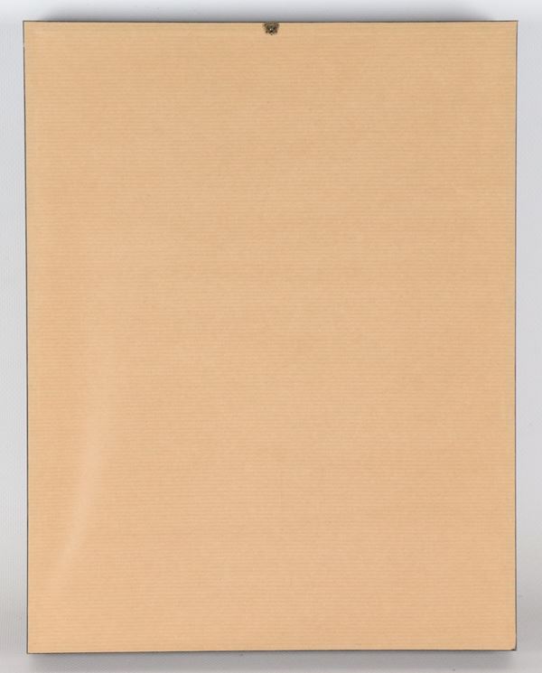 "Figura maschile astratta", piccolo dipinto a tecnica mista su carta in cornice in legno ebanizzato