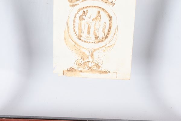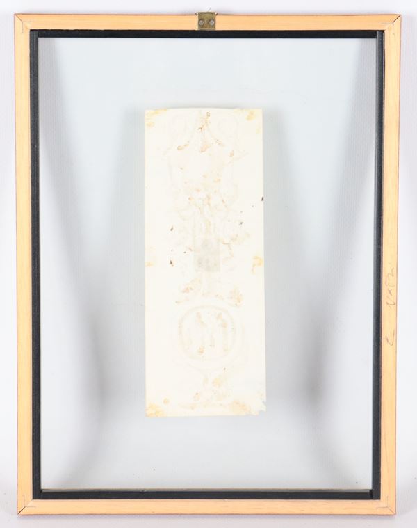 Att.to. "Fregio architettonico", piccolo disegno a china e tempera in cornice in noce a giorno