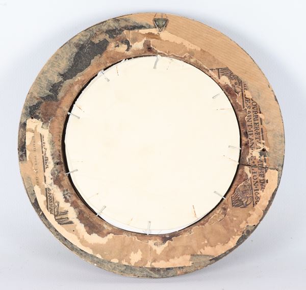 Att.to. "Ritratto di vecchia", piccolo disegno a china su carta in antica cornice in legno dorato a forma tonda