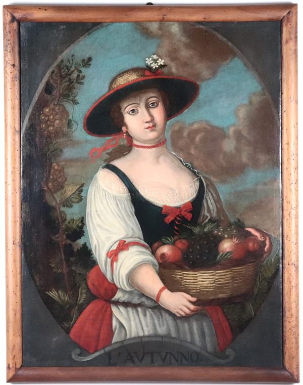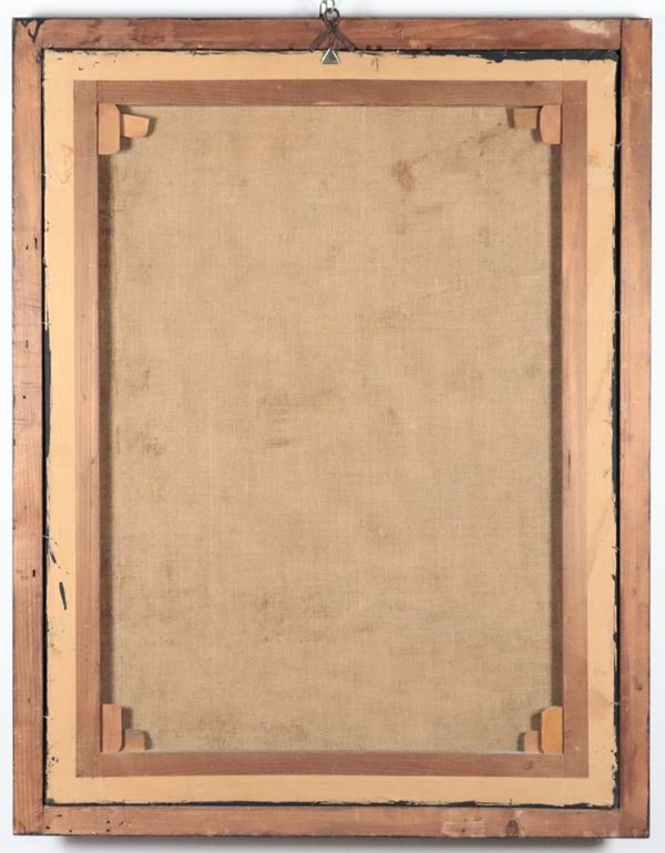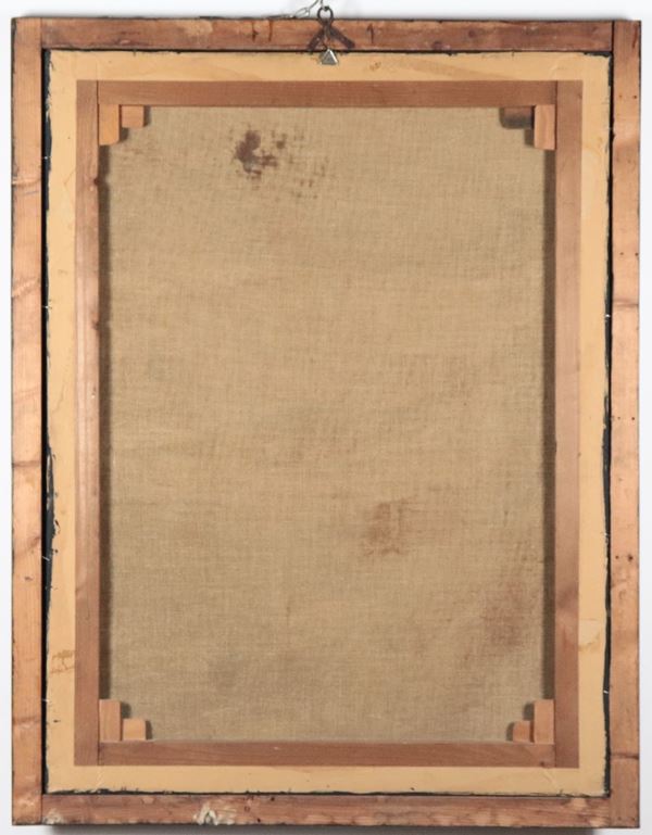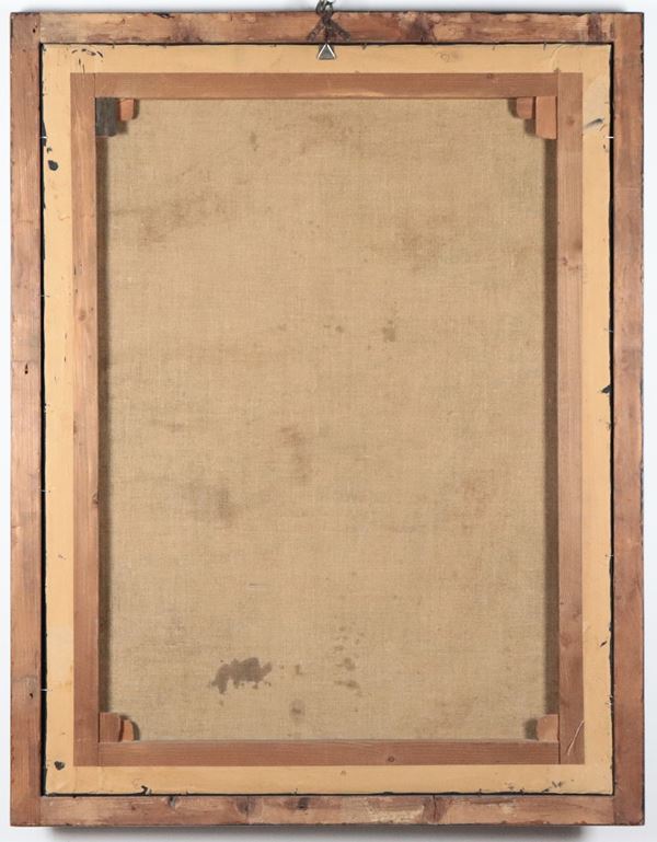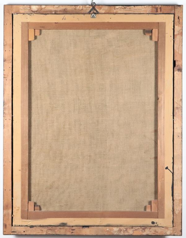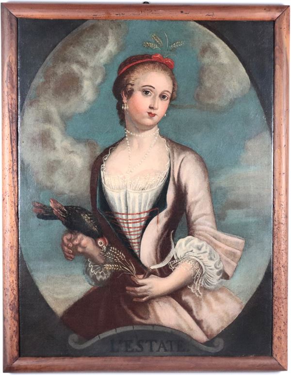 "Le Quattro Stagioni", quattro pregevoli e luminosi dipinti ad olio su tela in cornici in legno dorato