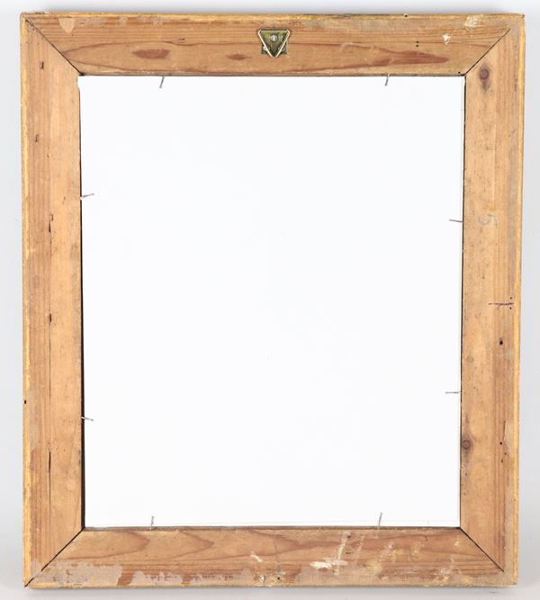 Misura disegno sesto ovale cm 7,5 x 16, disegno rettangolare cm 14 x 18,5, totale in cornice cm 23 x 18.