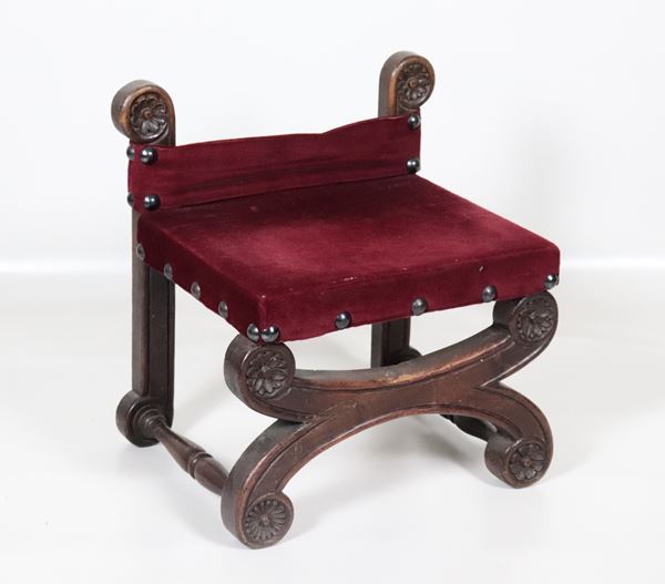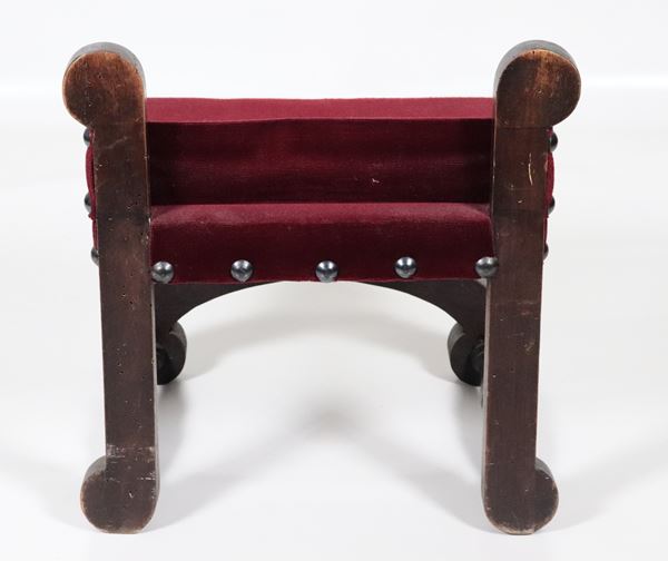 Modello di poltroncina seicentesca in noce, copertura in velluto rosso cardinalizio. Fine XIX Secolo
