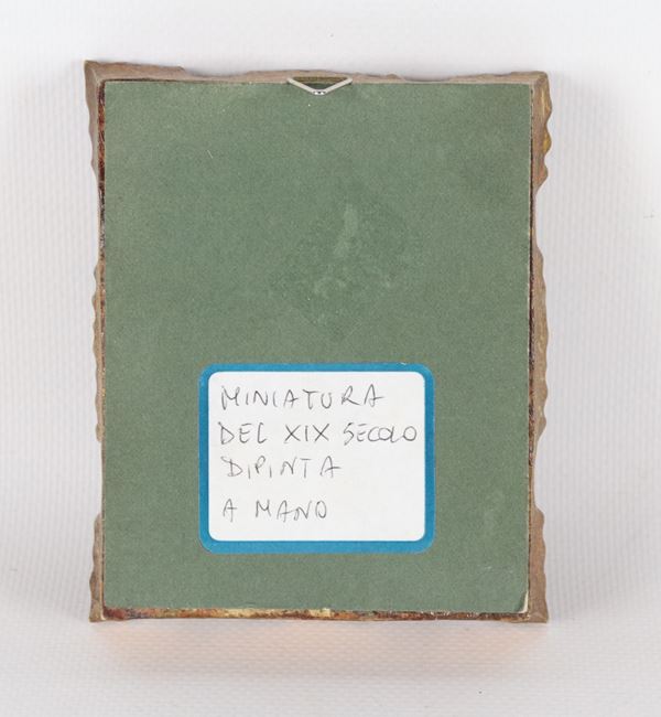 "Ritratto di nobiluomo con baffi", miniatura dipinta in cornicetta dorata e intagliata
