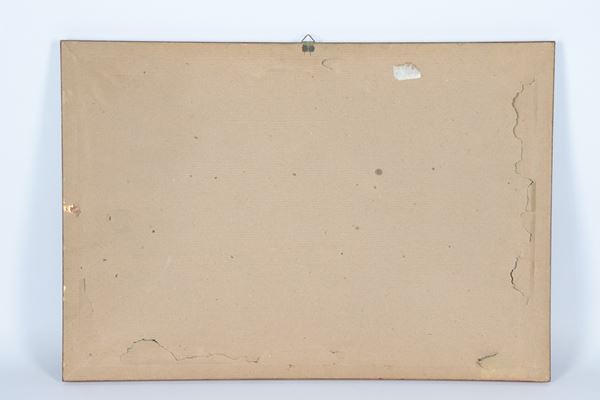 "Interno di cattedrale con altare", piccolo acquarello su carta in cornicetta dorata