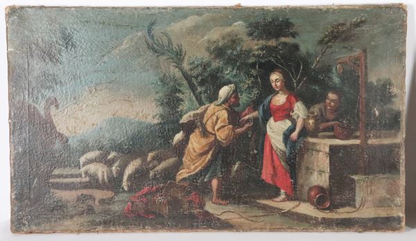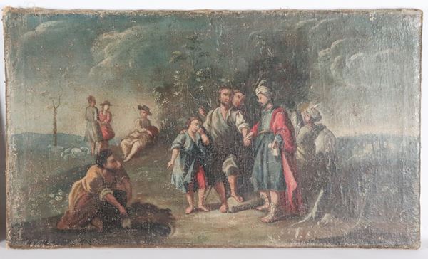 "Scene bibliche", coppia di dipinti ad olio su tela