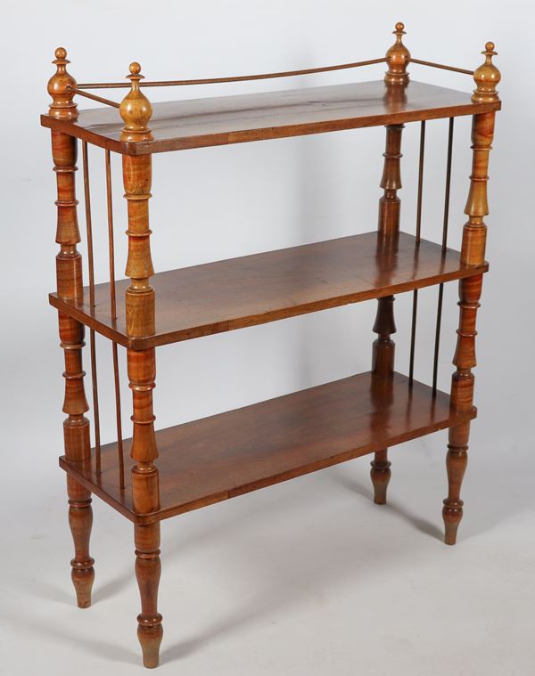 Etagère in noce a tre ripiani con quattro gambe tornite