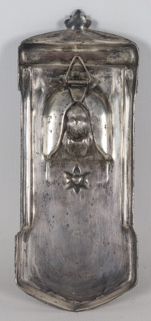 Acquasantiera Liberty in metallo argentato e sbalzato