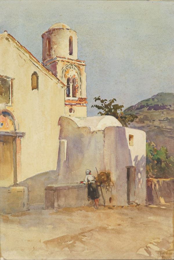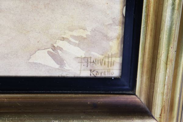 acquarello su cartacornice in legno dorato, cm 52 x 37.