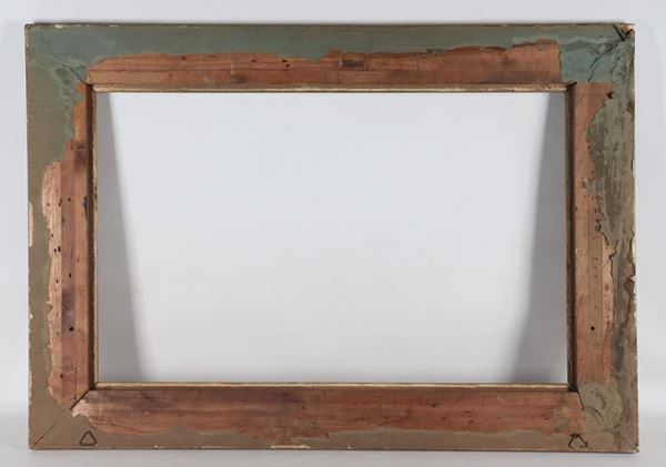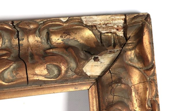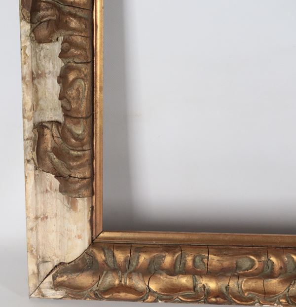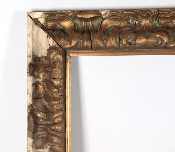 Antica cornice in legno dorato e intagliato a foglie d'acanto
