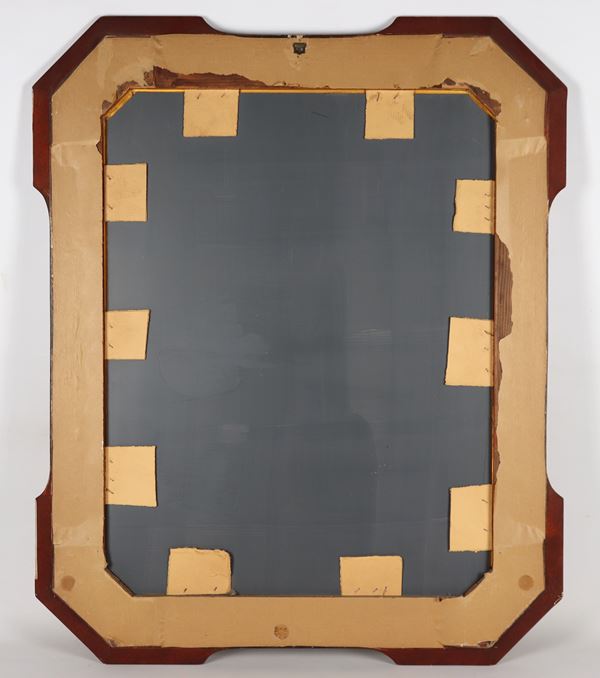 Antica specchiera napoletana a guantiera in legno dorato e grafito