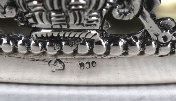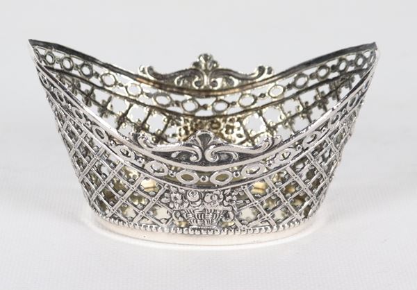 Antico piccolo cestino in argento cesellato, sbalzato e traforato, gr. 80