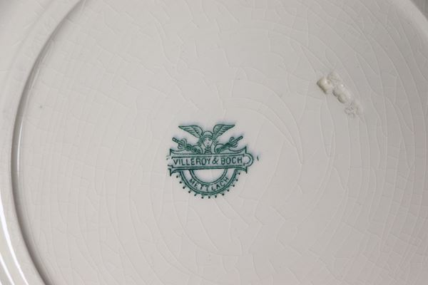 Antico servizio di piatti in ceramica smaltata bianca e blu Villeroy & Boch- Dresda, decoro Mettlach (72 pz.)