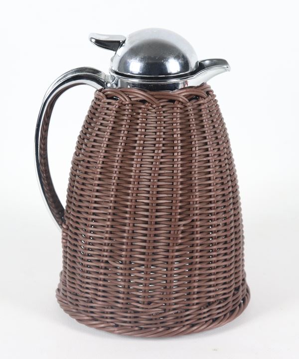 Brocca termica vintage rivestita a finto midollino marrone
