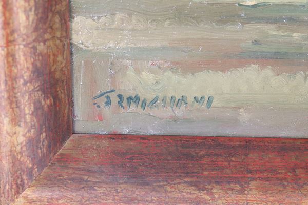 dipinto ad olio su cartone pressatocornice in noce, cm 30 x 40.