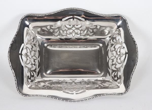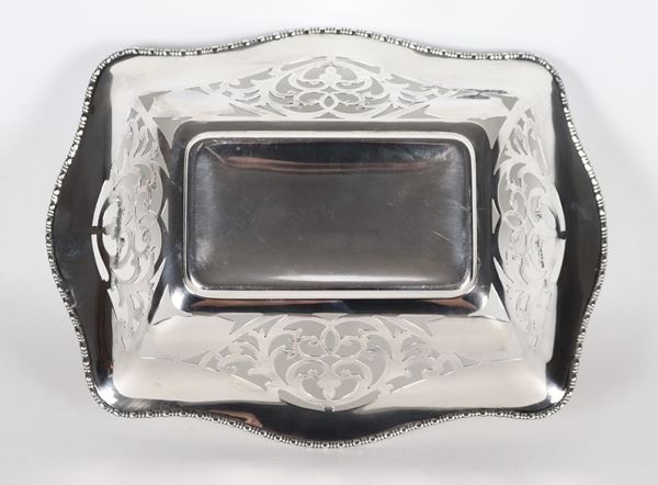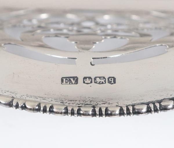 Cestino in argento Epoca Giorgio V, con bordo cesellato, sbalzato e traforato, gr. 410