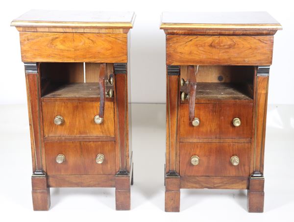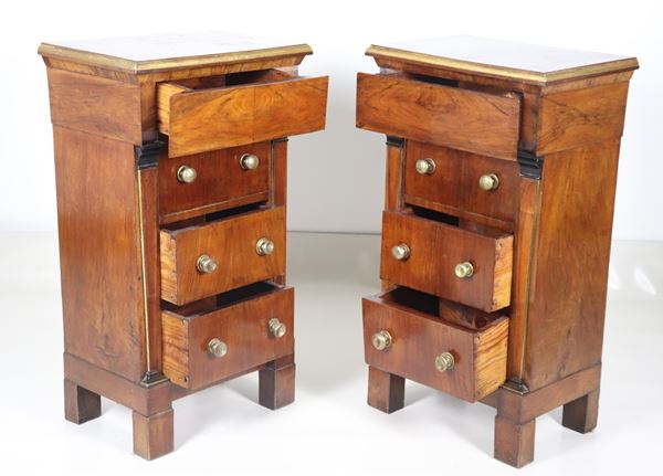Coppia di comodini Impero in noce