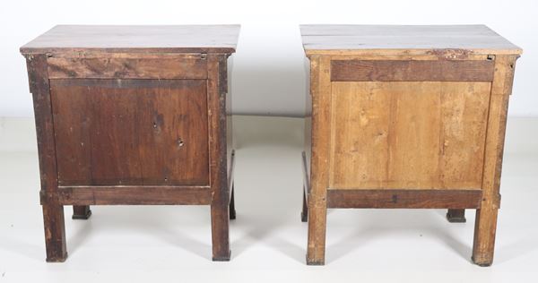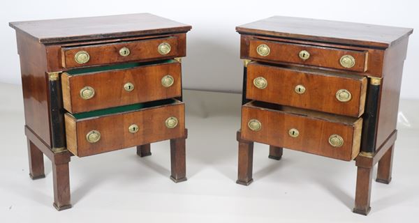 con montanti laccati neri a colonnine neoclassiche, guarnizioni in bronzo dorato e cesellato e tre tiretti, cm 66 x 44 x 73 h ciascuno.