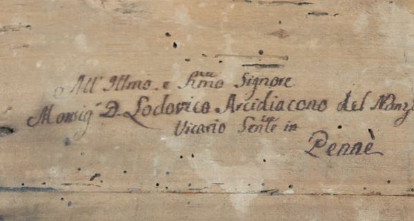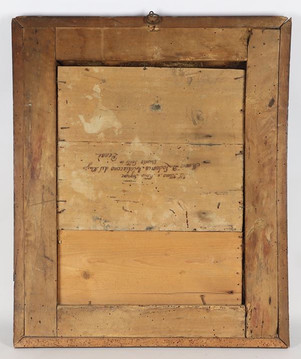 all'interno specchio al mercurio. Cm 66 x 54, misura della luce cm 48 x 37.