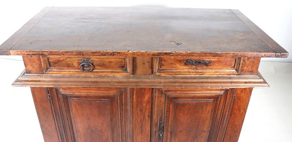 due tiretti e due sportelli sottostanti riquadrati, cm 131 x 62 x 99 h.