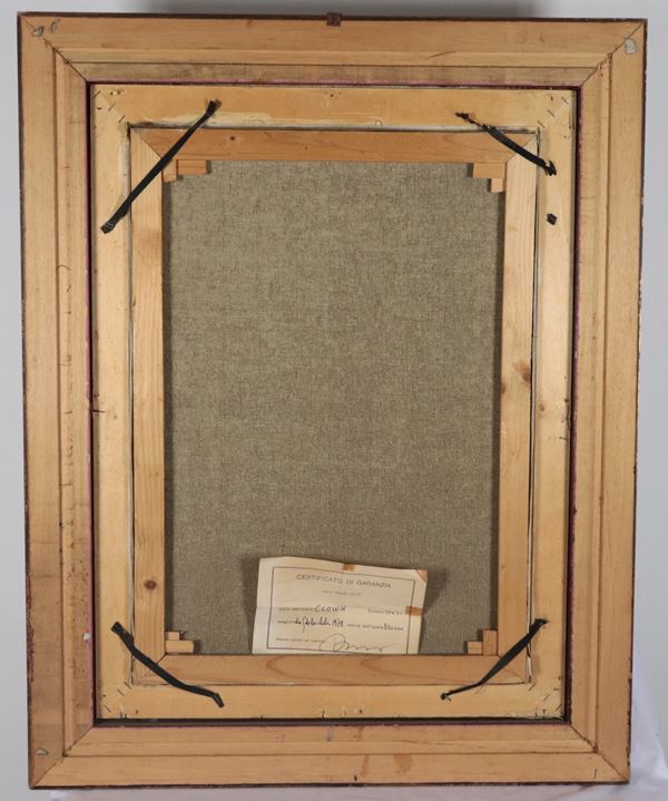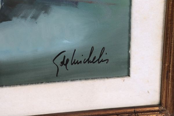 dipinto ad olio su telacornice in legno dorato e passepartout, cm 70 x 50.