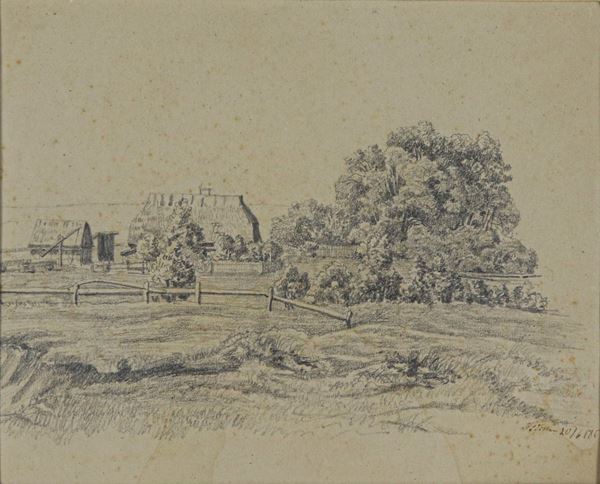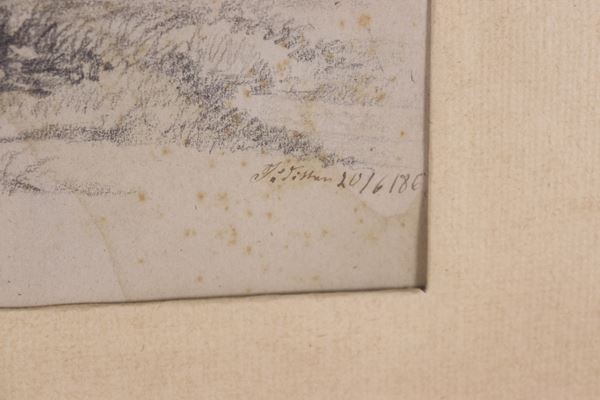 piccolo disegno a carboncino e chinacornice in noce e passepartout, cm 35 x 40.