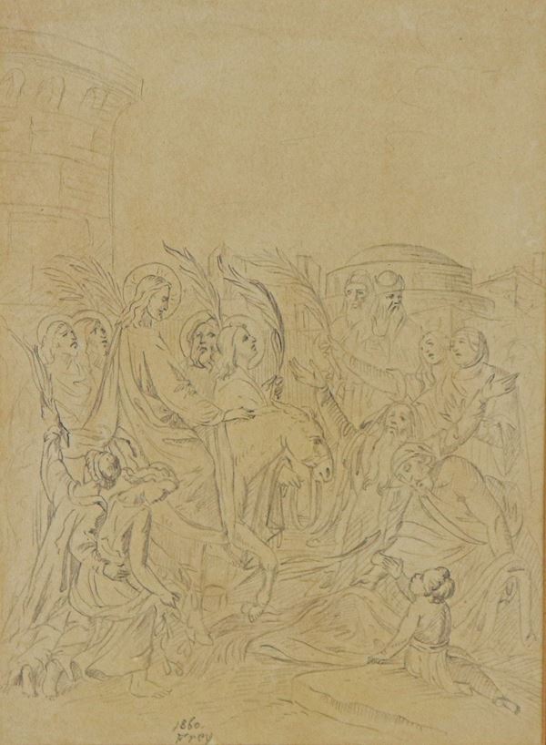 Firmato e datato 1860. "L'ingresso di Gesù a Gerusalemme"